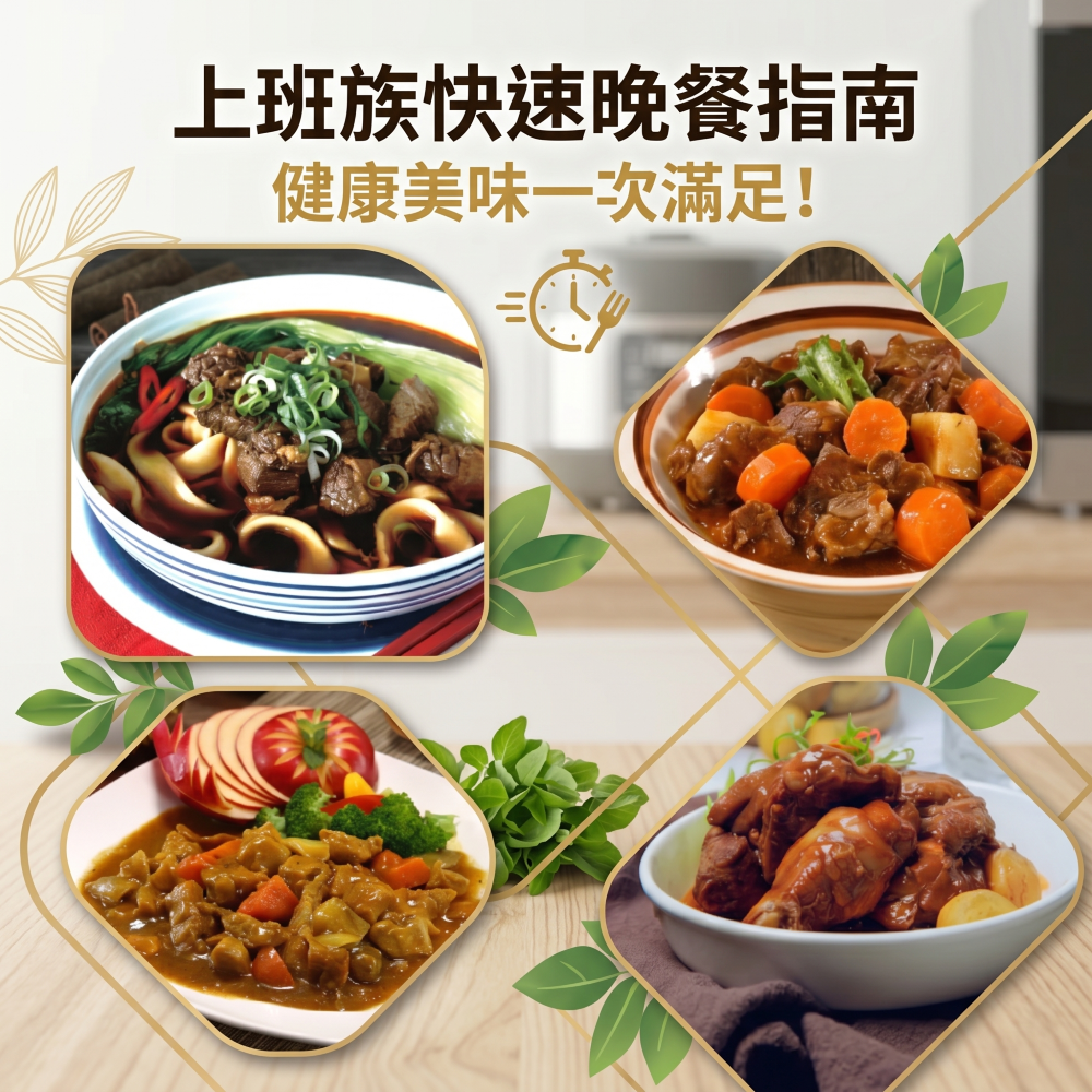 下班好累不想煮?上班族晚餐常見的 3 大困擾下班後只想癱在沙發上,但「晚餐吃什麼」卻總像揮之不去的噩夢。在「外食傷荷包」與「自煮太麻煩」之間痛苦掙扎,正是現代上班族陷入疲勞惡性循環的主因。 外食與外送:高油高鹽,荷包與健康大失血我們每天依賴外送平台點餐,看似省下了烹調時間,但其實付出了極大的隱形成本。目前在台北或都會區叫一份外送便當,加上運費往往逼近新台幣200元,一個月累積下來是一筆可觀的開銷。 更令人擔憂的是健康風險。台灣衛生福利部建議成人每日鈉攝取量不宜超過2400毫克,大約等於6公克的鹽。然而,市售的排骨便當或滷肉飯,單一餐的鈉含量經常直接破表。 自己下廚:備料繁瑣,飯後還要洗鍋碗瓢盆自煮雖然健康,但前置與後理的體力成本太高。從洗菜、分裝到調味,光是備料就耗盡體力;飯後即便有洗碗機,處理鍋垢與廚餘依然是令人心累的家務。我們辛勞了一整天,寶貴的休息時間不該被困在廚房油煙裡。 常備菜(便當菜):週末泡湯,且反覆微波流失營養週末花兩小時做「常備菜」看似完美,卻隱藏兩大問題:犧牲假期: 好不容易盼到週末,卻得在廚房大火拌炒、分裝,完全失去放鬆機能。營養與食安危機: 反覆微波會破壞水溶性維生素,且冷卻不夠快易滋生細菌。最後端上桌的,只是填飽肚子的「剩菜」,而非營養。  上班族快速晚餐怎麼解?3 種熱門方案大評比為了解決晚餐難題,我們整理了目前辦公室裡最常討論的三種快速上菜方案。每一種都有各自的優缺點,端看你的時間預算與健康考量。 方案一:電鍋懶人料理利用台灣家家戶戶必備的大同電鍋來做一鍋到底的料理,是許多人的首選。我們只要把切塊的雞肉、高麗菜、香菇與蒜頭通通丟進內鍋,加入適量的水和醬油調味,按下開關就能去洗澡休息。 這種方式的最大優點是完全不用顧火,也能確實吃到原型食物。不過,它的麻煩在於備料時間依然省不下來,你還是得洗菜切肉。而且電鍋料理的變化有限,連續吃幾天燉煮類的湯品,胃口很容易感到疲乏。 方案二:快煮麵 / 泡麵加蛋當我們真的累到極致時,只要5分鐘內完成的快煮麵或泡麵加蛋,就成了最誘人的選項。只要水滾後丟入麵條,打一顆半熟雞蛋,淋上附贈的醬汁或一點辣油,香氣立刻撲鼻而來。 市面上的熱銷泡麵雖然美味方便,但我們必須正視其健康代價。這類產品的鈉含量極高,一包往往超過1500毫克,幾乎佔了單日建議攝取量的70%。長期將這種高碳水化合物、高鈉的組合當作正餐,不僅容易造成水腫,更無法提供身體所需的均衡營養。 方案三:高品質冷凍調理包這幾年,高品質冷凍調理包逐漸成為雙薪家庭與單身貴族的新寵。這類產品利用先進的急速冷凍技術,在食物剛煮好、最美味的瞬間將其凍結,完全不需要依賴防腐劑來保鮮。 以市場上知名的漢典食品為例,我們將星級主廚的調味配方直接封裝,上班族下班後只需燒一鍋熱水,將調理包隔水加熱10分鐘,就能把紅燒牛肉或馬鈴薯燉梅花肉等費工的菜色端上餐桌。這不僅省去了所有備料與清洗的麻煩,還能精準控制熱量,是目前兼顧速度、營養與品質的最佳解法。晚餐方案比較表格我們將這三種常見方案的關鍵數據整理成表格,幫助你一眼看出最符合自身需求的選擇。評比項目電鍋懶人料理快煮麵 / 泡麵加蛋高品質冷凍調理包平均準備時間30 - 45 分鐘(含備料)5 分鐘內完成10 - 15 分鐘健康與營養高(取決於食材選擇)極低(高鈉、高碳水)高(營養封存、蛋白質豐富)事後清潔費力度高(需洗砧板、刀具、內鍋)低(只需洗一個鍋子與碗)極低(只需洗碗筷,零油煙)口味變化度較單調(多為燉煮類)單一(台式或韓式麵體為主)極高(可選擇異國風、湯品、肉類)為什麼「冷凍調理包」是快節奏的晚餐首選?我們進一步分析市場數據後發現,越來越多上班族放棄傳統的開火烹調,轉向冷凍調理包的懷抱。這不僅僅是因為懶惰,而是技術進步帶來了更好的生活品質。 急速冷凍技術:鎖住新鮮與原汁原味,不需防腐劑打破冷凍食品「不新鮮」的迷思! 現代調理包採用 急速冷凍(IQF)技術,在食物巔峰狀態瞬間降溫至 -18℃。鎖住鮮甜: 水分形成的微小冰晶不破壞細胞壁,肉質依然軟嫩。零防腐劑: 在低溫環境下細菌無法生長,完全無需化學添加,口感神還原現煮狀態。 從容自煮零油煙:隔水加熱 10 分鐘,優雅端出功夫菜在寸土寸金的都市公寓裡,廚房通風往往不佳。大火爆香蔥、薑、蒜泥,雖然能增加香氣,但產生的油煙卻對呼吸道極度不友善,甚至會讓客廳的布沙發沾滿油膩味,而冷凍料理包則有以下3個好處:免開抽油煙機: 全程隔水加熱,廚房保持絕對清爽。不怕廚藝翻車: 口味選擇多元且原汁原味,沒有廚藝也不用擔心。簡單快速上菜: 不需要預熱烤箱或氣炸鍋,水滾加熱就能完美上菜。 份量精準:一人食也能吃得豐盛,不浪費食材根據台灣環境部的相關統計,台灣每年浪費高達數十萬噸的廚餘。對於獨居或兩口之家的上班族來說,買一把蔬菜或一盒豬肉片,如果沒有連續幾天開伙,很容易放到腐壞變質,最後只能丟進垃圾桶。 高品質調理包徹底解決了這個問題。每一份都是精準設定好的1-2人份量,熱量與營養標示清清楚楚,既能吃到多樣化的菜色,也能減少食材耗損,這才是真正精明且環保的消費方式。  漢典食品樂食刻:專為忙碌上班族打造的專屬「食刻」漢典食品「樂食刻」
