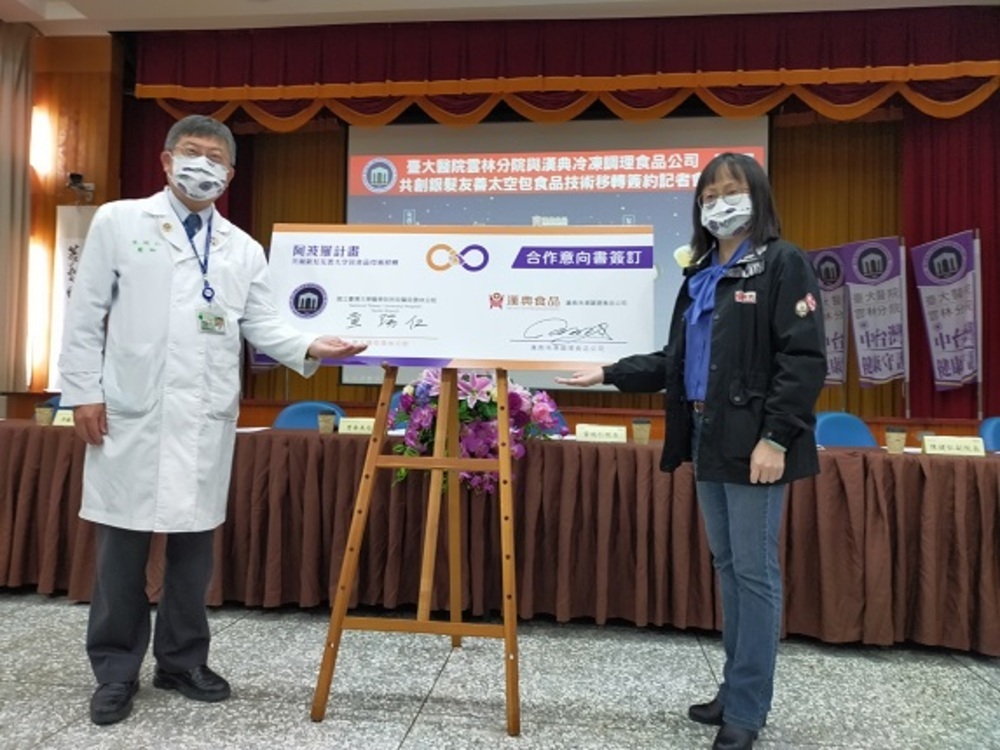 為照顧銀髮族的健康與營養,臺大醫院雲林分院攜手漢典冷凍調理食品公司研發適合銀髮族的飲食,雙方於2月9日舉行「銀髮友善太空包合作技轉簽約儀式」,未來將製作合乎年長者習慣的台式口味、既營養又方便調理,讓照顧者輕鬆免煩惱就能照顧好老年人的健康,為年長者打造好體力,預防肌少症的發生。