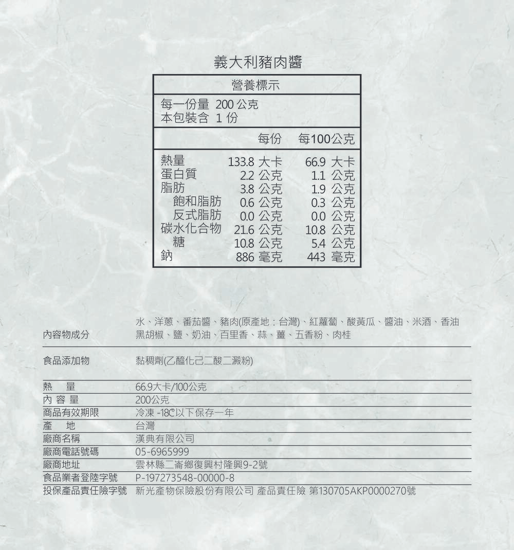 品名:【漢典】經典紅醬~義大利豬肉醬