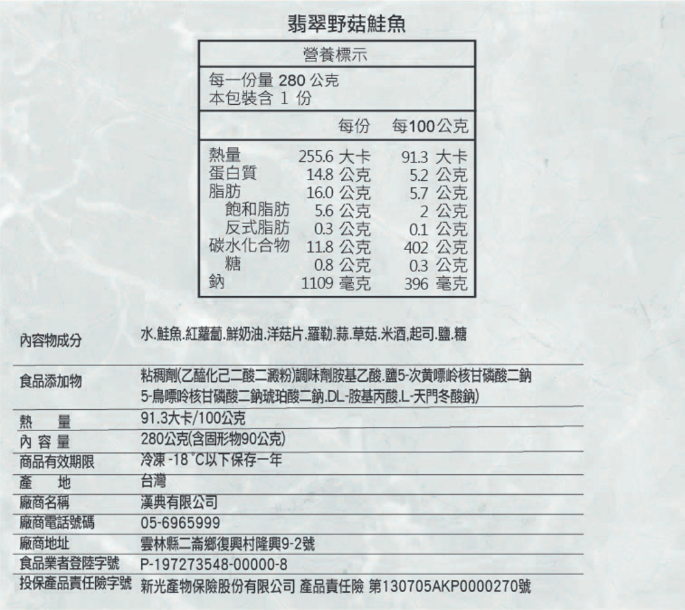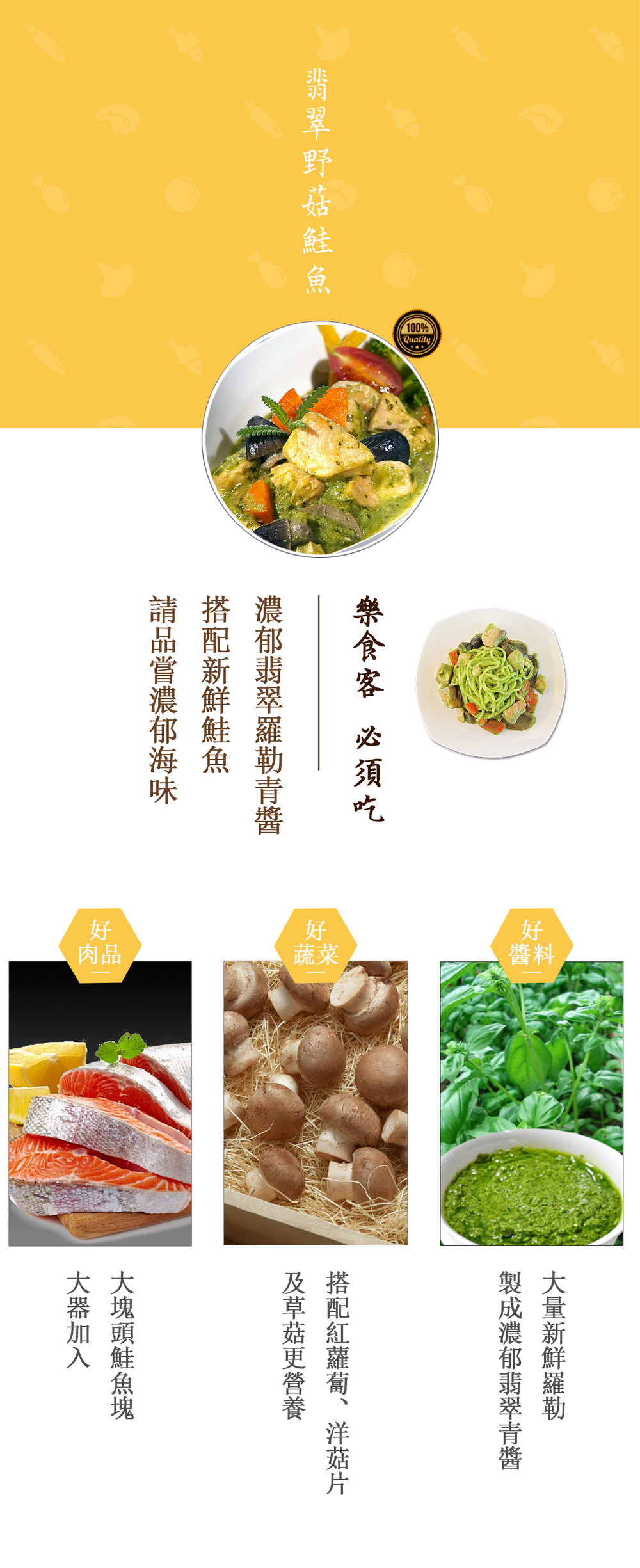 品名:【漢典食品】經典青醬~翡翠野菇鮭魚