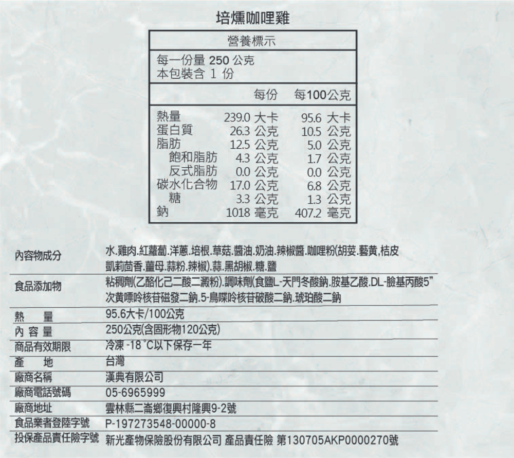 品名:【漢典食品】培燻咖哩雞(有辣度)