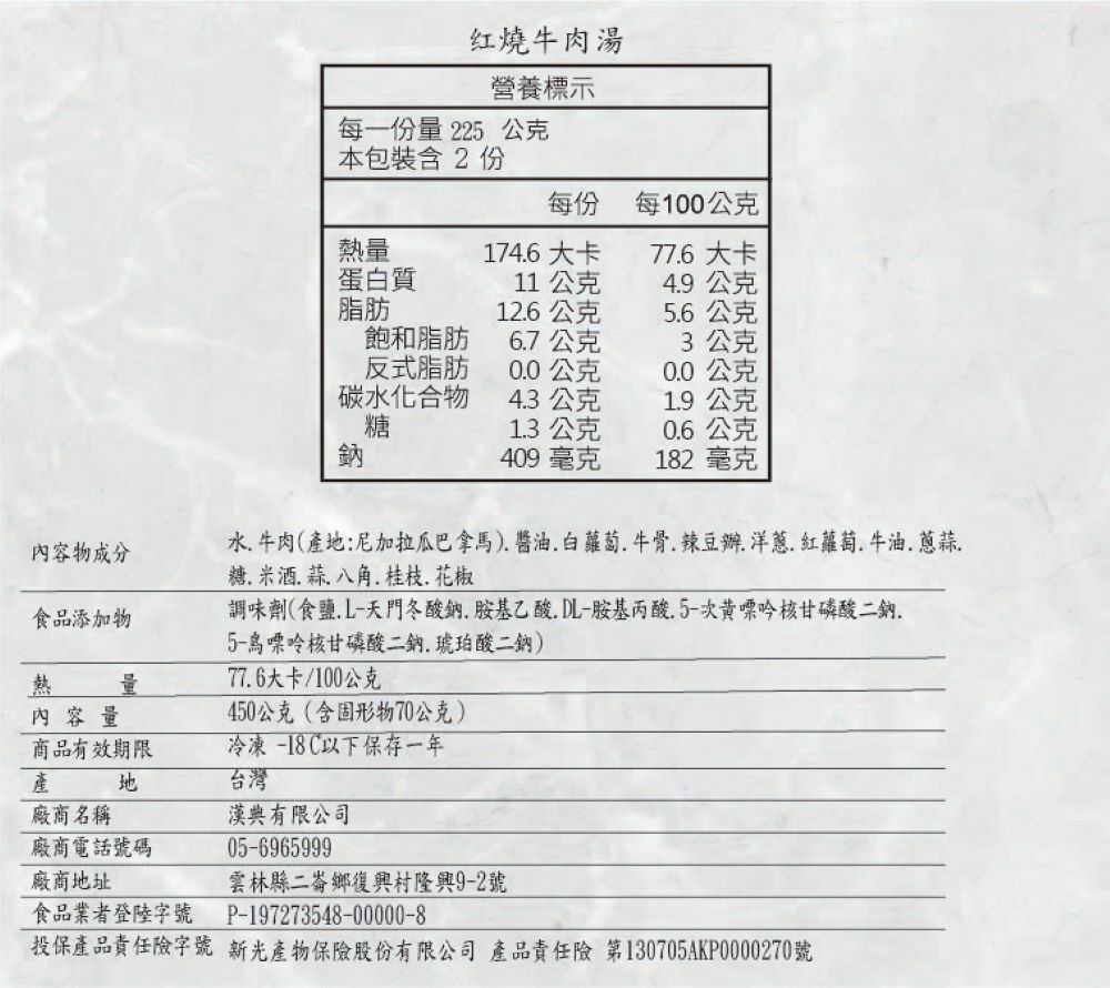 品名:【漢典食品】紅燒牛肉湯(不含麵)